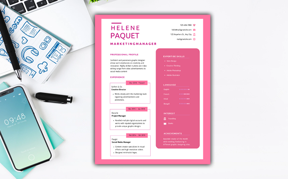 Printable Resume Template PDF Pink and White